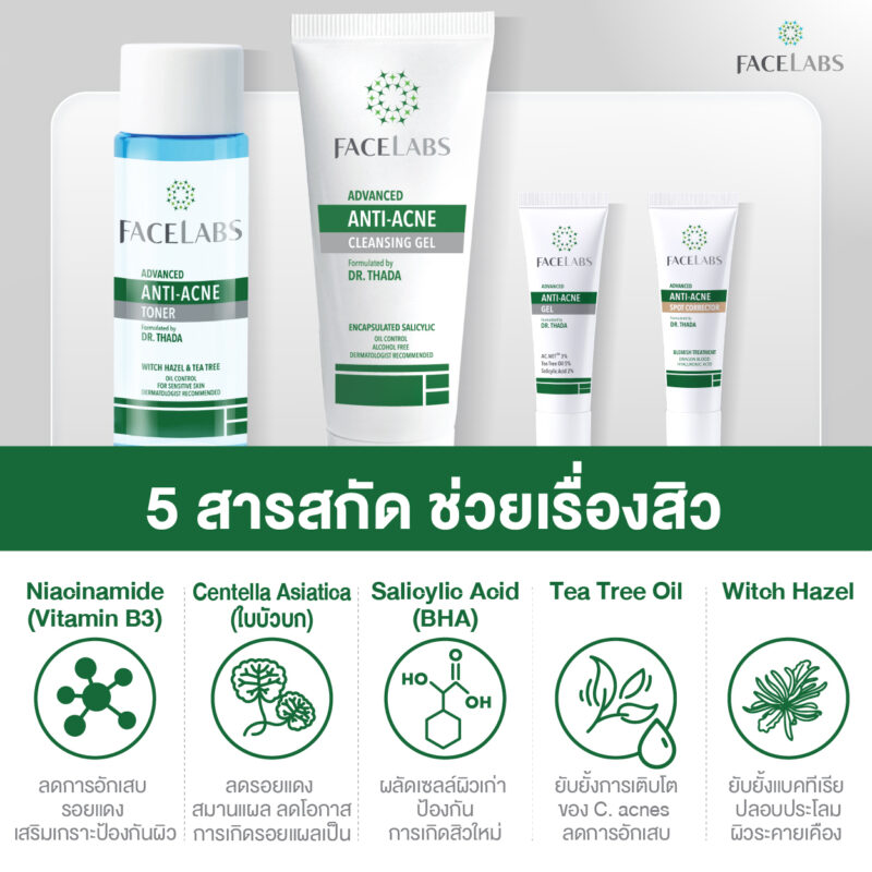 FACELABS Advanced Anti-Acne Cleansing Gel เจลล้างหน้าลดสิวสูตรคุณหมอ ทำความสะอาดผิวหน้าได้อย่างล้ำลึก คุมมันไม่อุดตัน เหมาะสำหรับผิวมีปัญหาสิว โดยเฉพาะผิวบอบบางแพ้ง่าย เริ่มต้นรูทีนดูแลผิวให้แข็งแรง ห่างไกลจากสิวอักเสบได้ตั้งแต่วันนี้